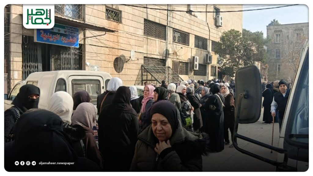 يشهد مركز بريد الجميلية مع نهاية كل شهر ازدحاماً شديداً وطوابير طويلة، تتصدرها النساء بانتظار صرف الرواتب والمعاشات والتأمينات الاجتماعية، وسط شكاوى من نقص السيولة وتأخر الصرف حتى في أيام العطل الرسمية.