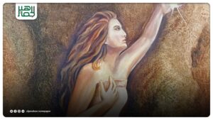 وشاركت الفنانة التشكيلية فاتن الحلو بعمل زاخر بالرموز والدلالات التي تعبر عن الأمل والحياة والإنسانية والعطاء، من خلال حضور المرأة والورود والمغارة، باستخدام الألوان الترابية لإضفاء عمق روحي على اللوحة.