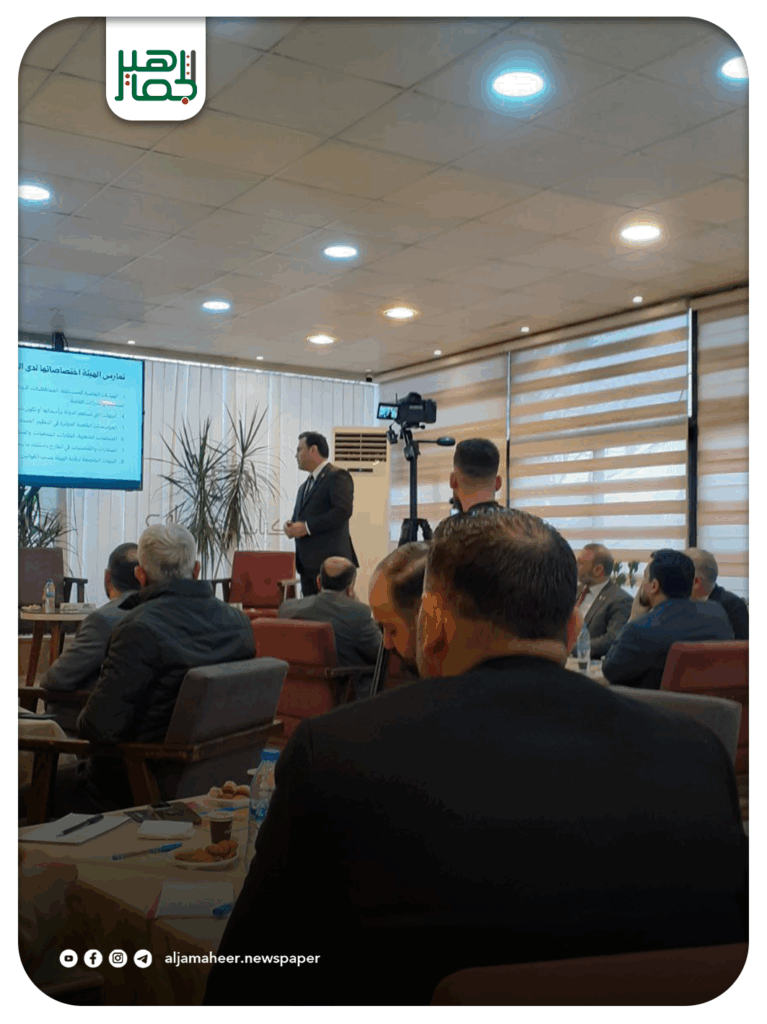 وخلال الورشة، قدم السيد هشام الحطيب من الهيئة عرضاً تناول البنية الإدارية والتنظيمية للهيئة وإداراتها المتخصصة، ودورها في بناء المجتمع وردم الهوة التي أحدثها النظام السابق، مع تعريف بالهيئة وأقسامها وخططها واختصاصاتها وقطاعاتها في المحافظات، وعملها على تطوير الإدارة وزيادة الإنتاجية وحماية الأموال الحكومية واسترداد ما نهب منها.