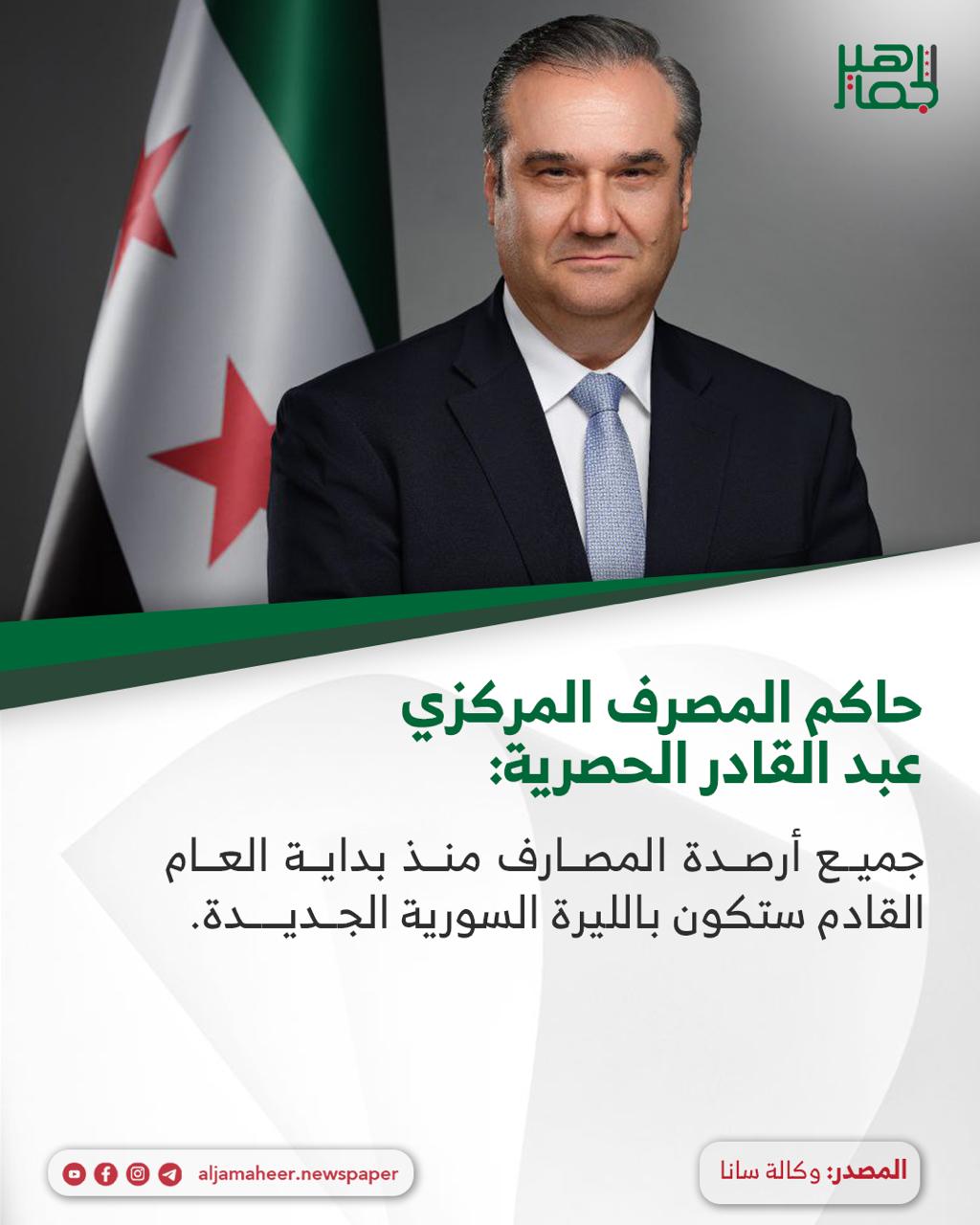 حاكم مصرف سوريا المركزي عبد القادر حصرية خلال مؤتمر صحفي للإعلان عن التعليمات التنفيذية للعملة السورية الجديدة