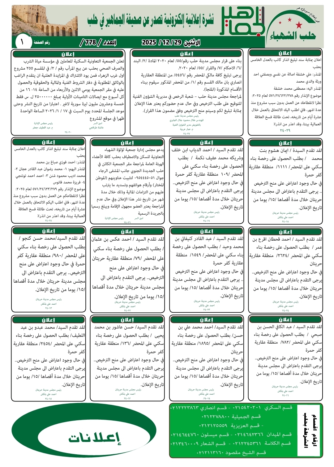 نشرة إعلانية إلكترونية العدد رقم 778 ليوم الاثنين 29– 12–2025 اعلانات On ديسمبر 29, 2025 Share نشرة إعلانية إلكترونية العدد رقم 778 ليوم الاثنين 29– 12–2025 Share FacebookTwitterGoogle+ReddItWhatsAppPinterestالبريد الإلكتروني