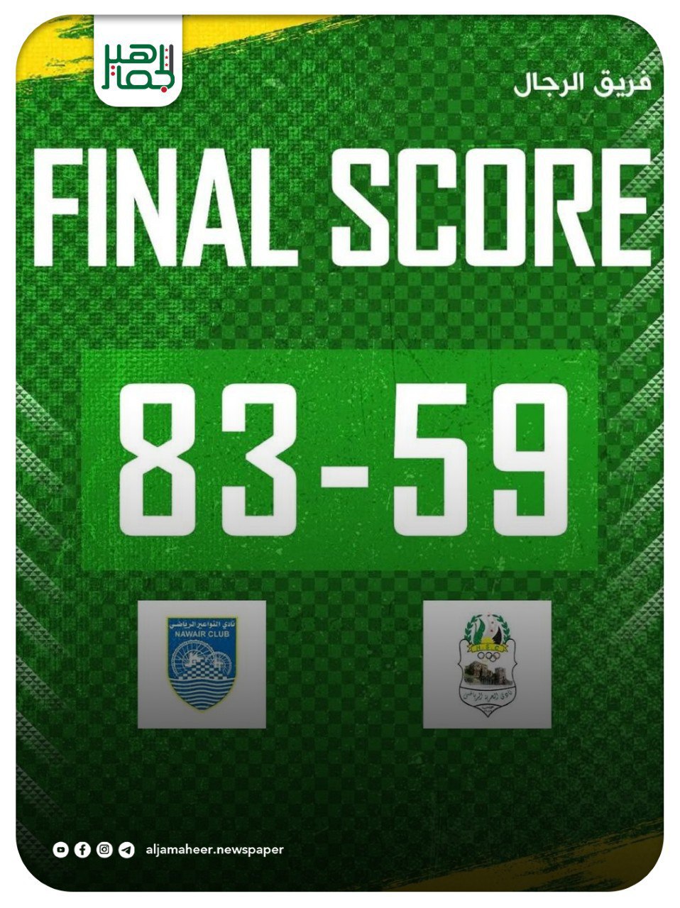 خسارة ودية لرجال سلة الحرية أمام النواعير بنتيجة 83/59 رياضة On ديسمبر 30, 2025 Share Share FacebookTwitterGoogle+ReddItWhatsAppPinterestالبريد الإلكتروني