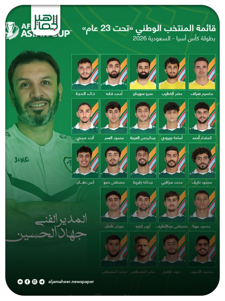 وقبيل المغادرة، أعلن المدير الفني جهاد الحسين القائمة النهائية للمشاركة في البطولة، مؤكداً أن الأهداف الفنية والانضباطية للمعسكر التدريبي قد تحققت، رغم بعض الإصابات الطارئة التي وُضعت قيد المعالجة.