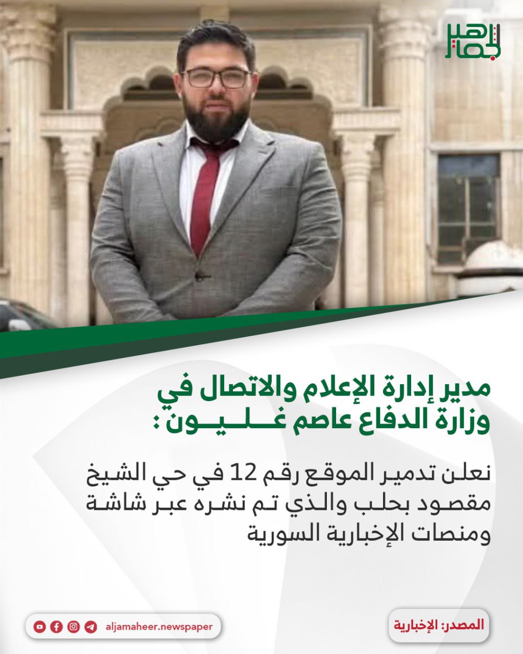 نعلن تدمير الموقع رقم 12 في حي الشيخ مقصود بحلب والذي تم نشره عبر شاشة ومنصات الإخبارية السورية