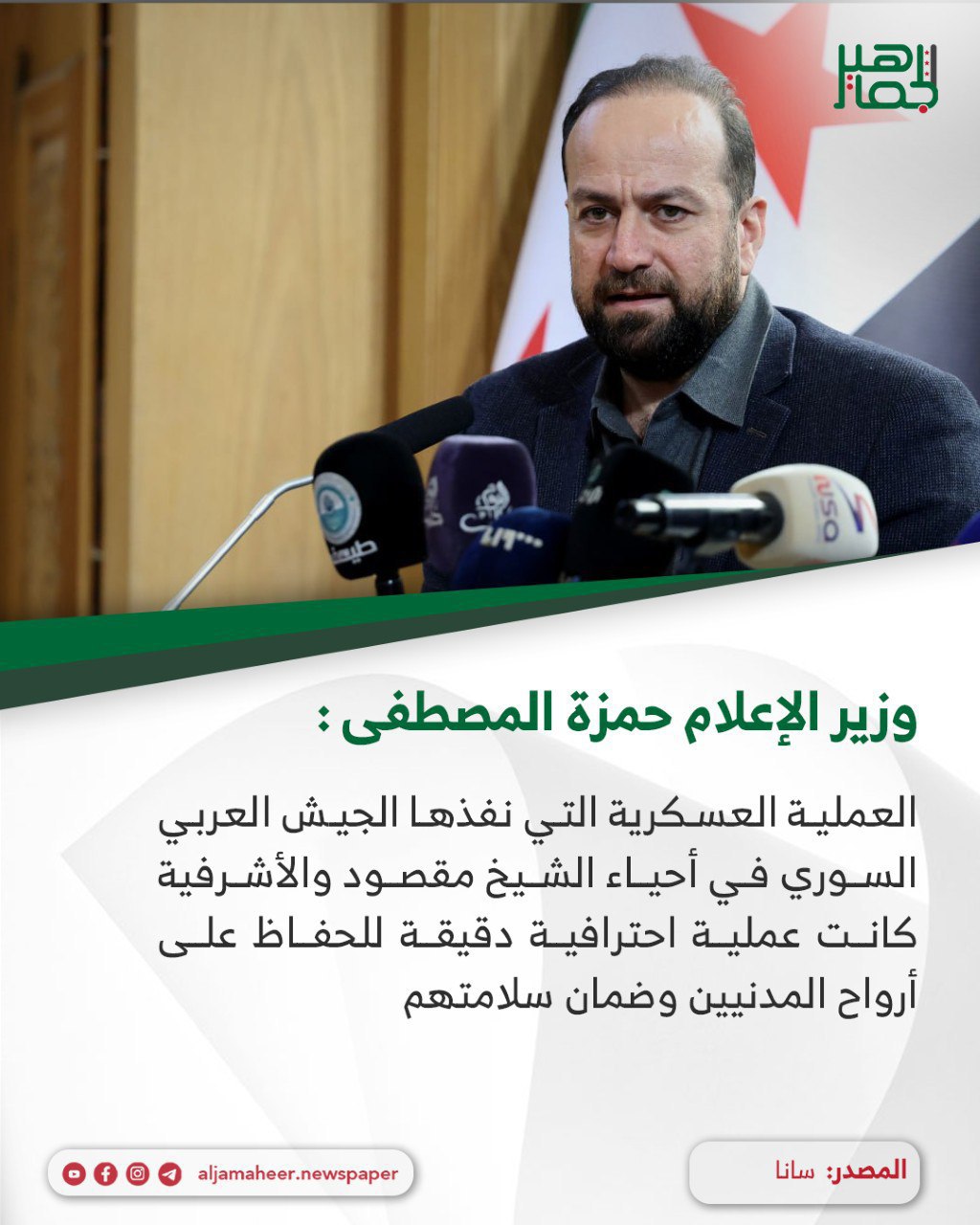 📌 العملية العسكرية التي نفذها الجيش العربي السوري في أحياء الشيخ مقصود والأشرفية كانت عملية احترافية دقيقة للحفاظ على أرواح المدنيين وضمان سلامتهم.