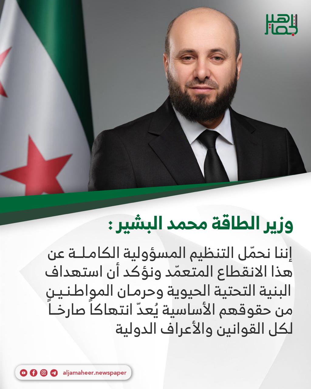 إننا نحمّل التنظيم المسؤولية الكاملة عن هذا الانقطاع المتعمّد ونؤكد أن استهداف البنية التحتية الحيوية وحرمان المواطنين من حقوقهم الأساسية يُعدّ انتهاكاً صارخاً لكل القوانين والأعراف الدولية