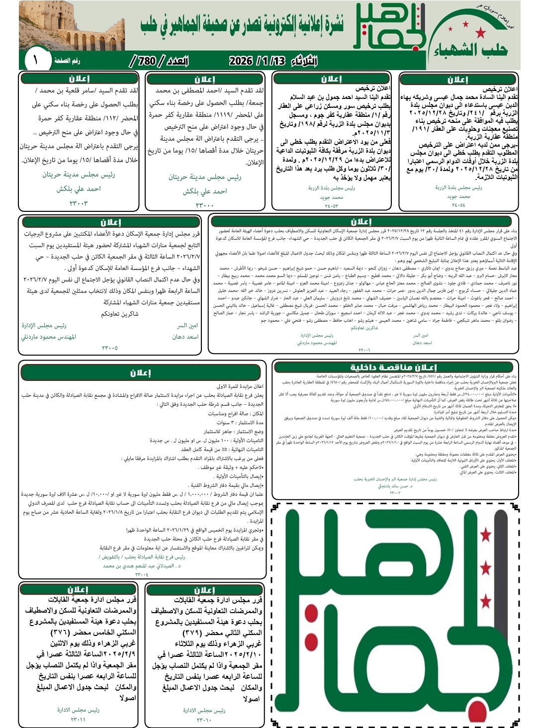 نشرة إعلانية إلكترونية العدد رقم 780 ليوم الثلاثاء 13– 1–2026. أحدث الأخباراعلانات On يناير 13, 2026 Share نشرة إعلانية إلكترونية العدد رقم 780 ليوم الثلاثاء 13– 1–2026 Share FacebookTwitterGoogle+ReddItWhatsAppPinterestالبريد الإلكتروني