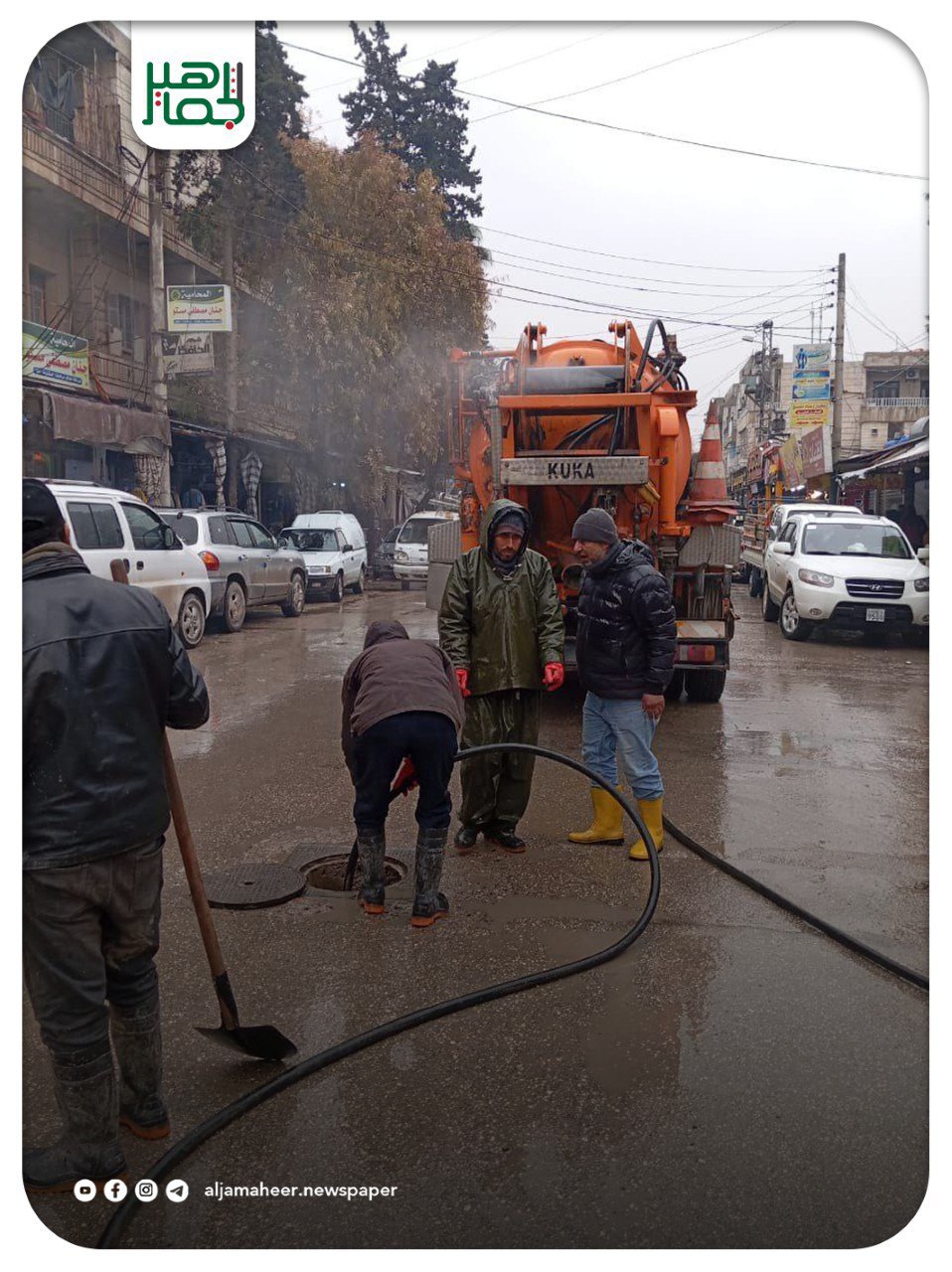 مراسل الجماهير: منبج ـ فتح وتنظيف المطريات والشبكات المطرية في عدد من الشوارع والأحياء، في منبج، ومعالجة تجمعات المياه لضمان انسيابها ومنع حدوث اختناقات مرورية أو أضرار خدمية، مع متابعة مستمرة من الفرق المختصة على مدار الساعة. محليات On يناير 13, 2026 Share Share FacebookTwitterGoogle+ReddItWhatsAppPinterestالبريد الإلكتروني