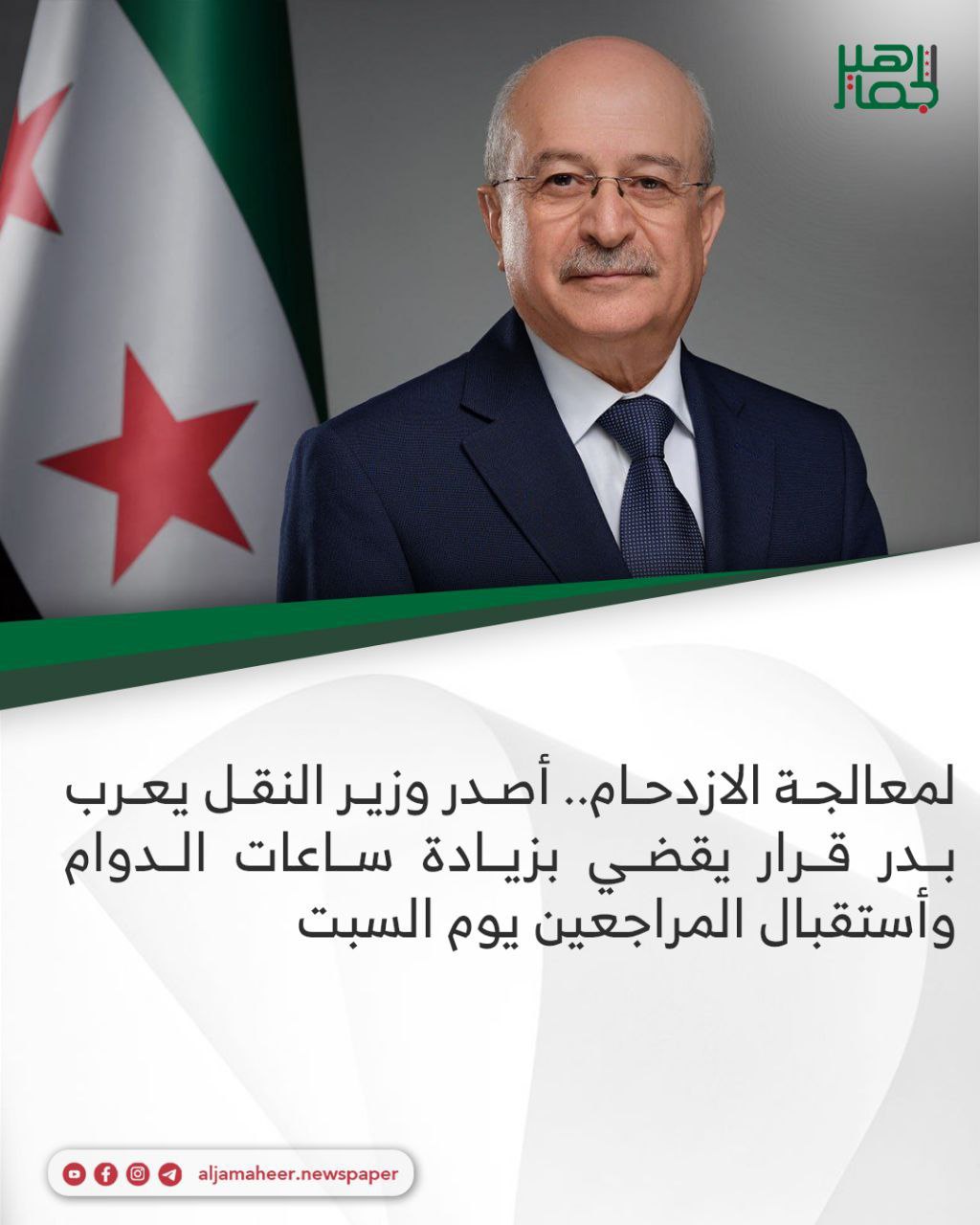 لمعالجة الازدحام.. أصدر وزير النقل يعرب بدر قرار يقضي بزيادة ساعات الدوام وأستقبال المراجعين يوم السبت