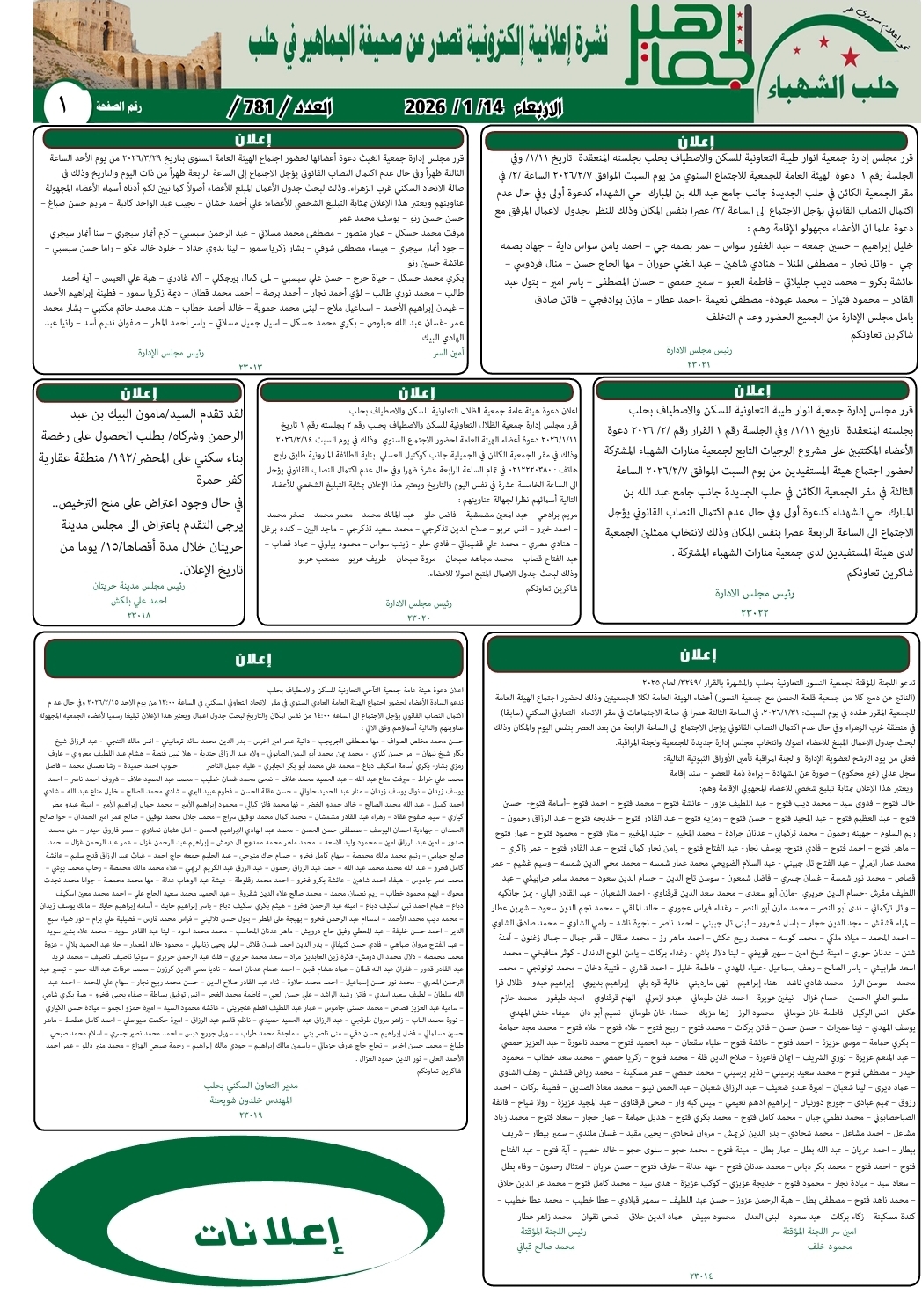 نشرة إعلانية إلكترونية العدد رقم 781 ليوم الاربعاء 14 – 1- 2026. أحدث الأخباراعلانات On يناير 16, 2026 Share 1 (1) Share FacebookTwitterGoogle+ReddItWhatsAppPinterestالبريد الإلكتروني