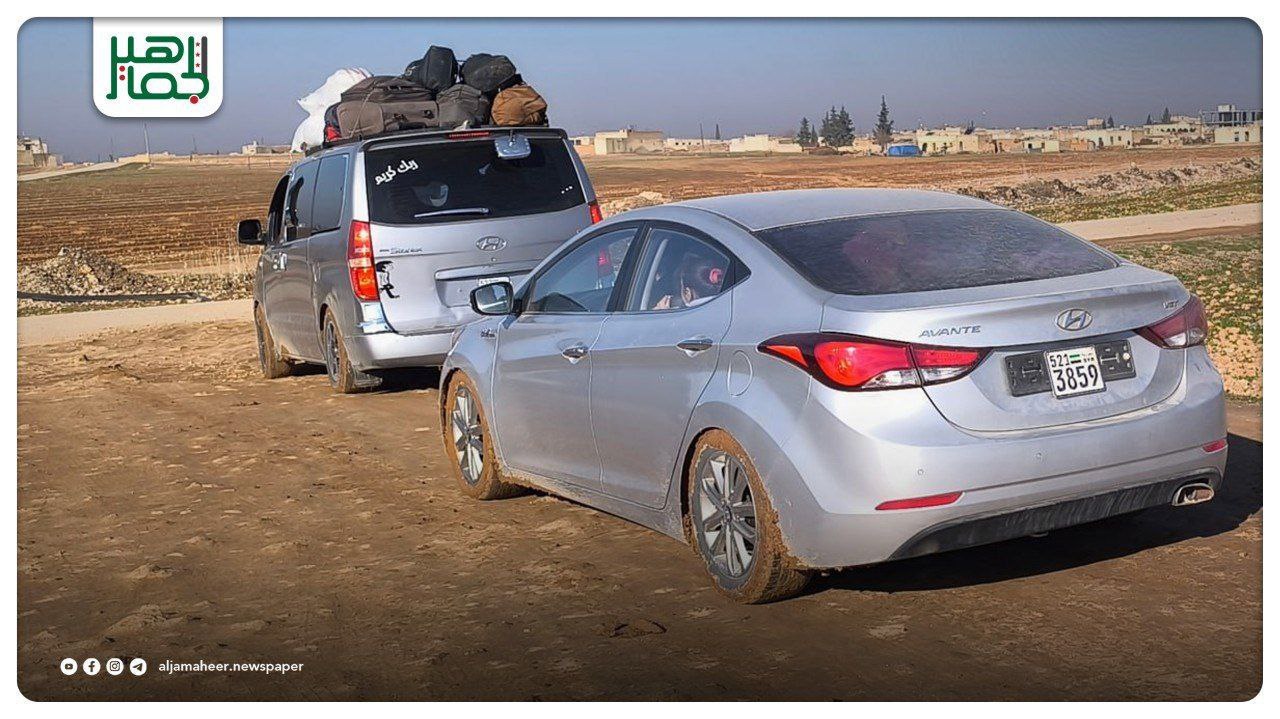 خروج المدنيين من قرية المبعوجة التابعة لمنطقة دير حافر في ريف حلب عبر طرق فرعية وزراعية خــ.ــطرة إلى مناطق سيطرة الدولة السورية، جراء مواصلة تنظيم قــ.ــسد منع الأهالي من الخروج عبر الممر الإنساني الذي أعلنت عنه هيئة العمليات في الجيش العربي السوري.