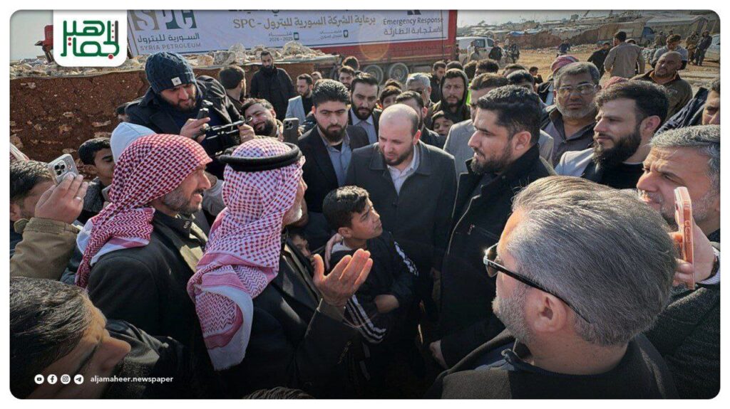 وزير الطاقة محمد البشير ومحافظ إدلب محمد عبد الرحمن يصلون إلى مخيمات الشمال السوري، للمشاركة في توزيع مواد التدفئة ضمن مبادرة “قافلة التدفئة” محليات On يناير 16, 2026 Share Share FacebookTwitterGoogle+ReddItWhatsAppPinterestالبريد الإلكتروني