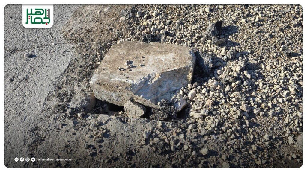 📌 ويأمل الأهالي أن تلقى شكواهم استجابة سريعة من قبل الجهات المعنية تجنباً لأي أضرار قد تنتج عن استمرار إهمال هذا الخطر الطرقي.