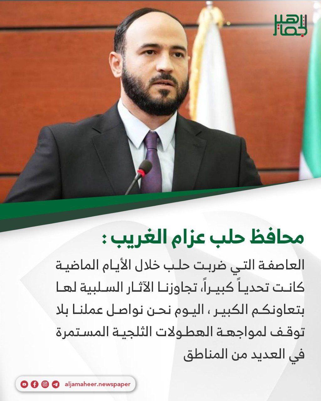📌العاصفة التي ضربت حلب خلال الأيام الماضية كانت تحدياً كبيراً، تجاوزنا الآثار السلبية لها بتعاونكم الكبير ، اليوم نحن نواصل عملنا بلا توقف لمواجهة الهطولات الثلجية المستمرة في العديد من المناطق.