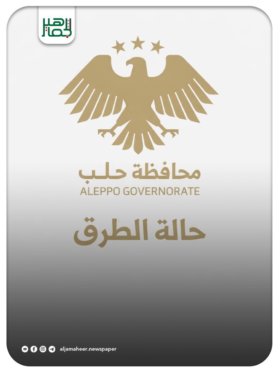📌 تدعو محافظة حلب السائقين إلى الالتزام بإرشادات السلامة العامة، وتوخّي الحيطة والحذر أثناء التنقّل، وتجنّب السفر ليلاً إلا للضرورة القصوى.