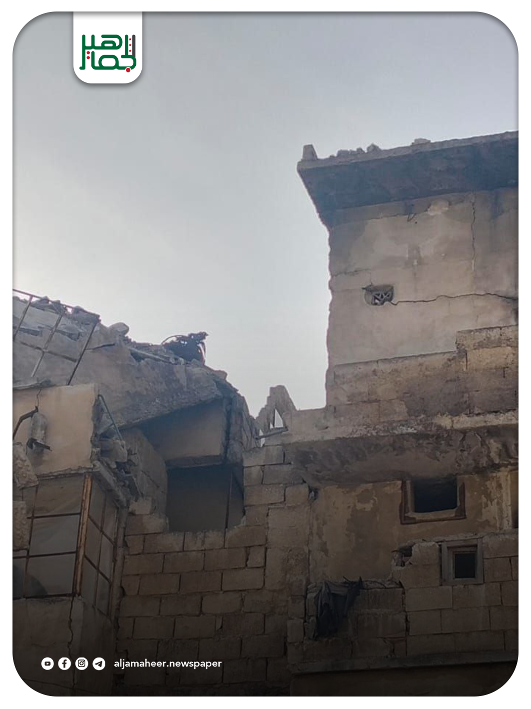 1. آثار الحرب المدمرة: استهداف النظام البائد بالقذائف والصواريخ التي أضعفت هياكل مبانٍ كثيرة.
