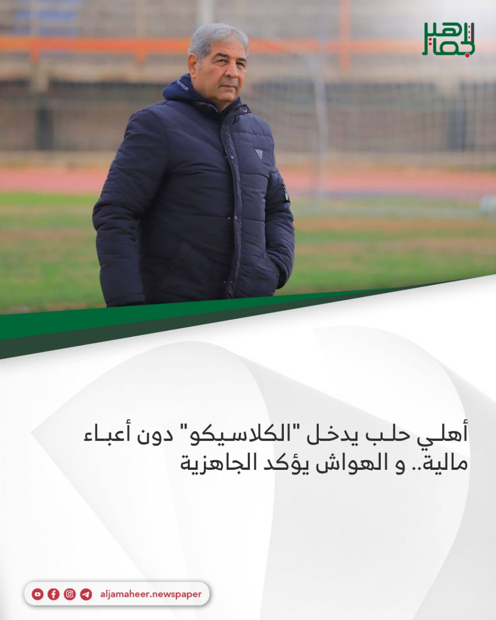 مدرب أهلي حلب، أحمد هواش، أكد في تصريح خاص لـ”الجماهير”، على جاهزية فريقه لاستئناف منافسات الدوري وخوض مواجهة “كلاسيكو الكرة السورية” التي تحمل طابعاً خاصاً وتشكل حدثاً مميزاً على المستويين الفني والجماهيري.