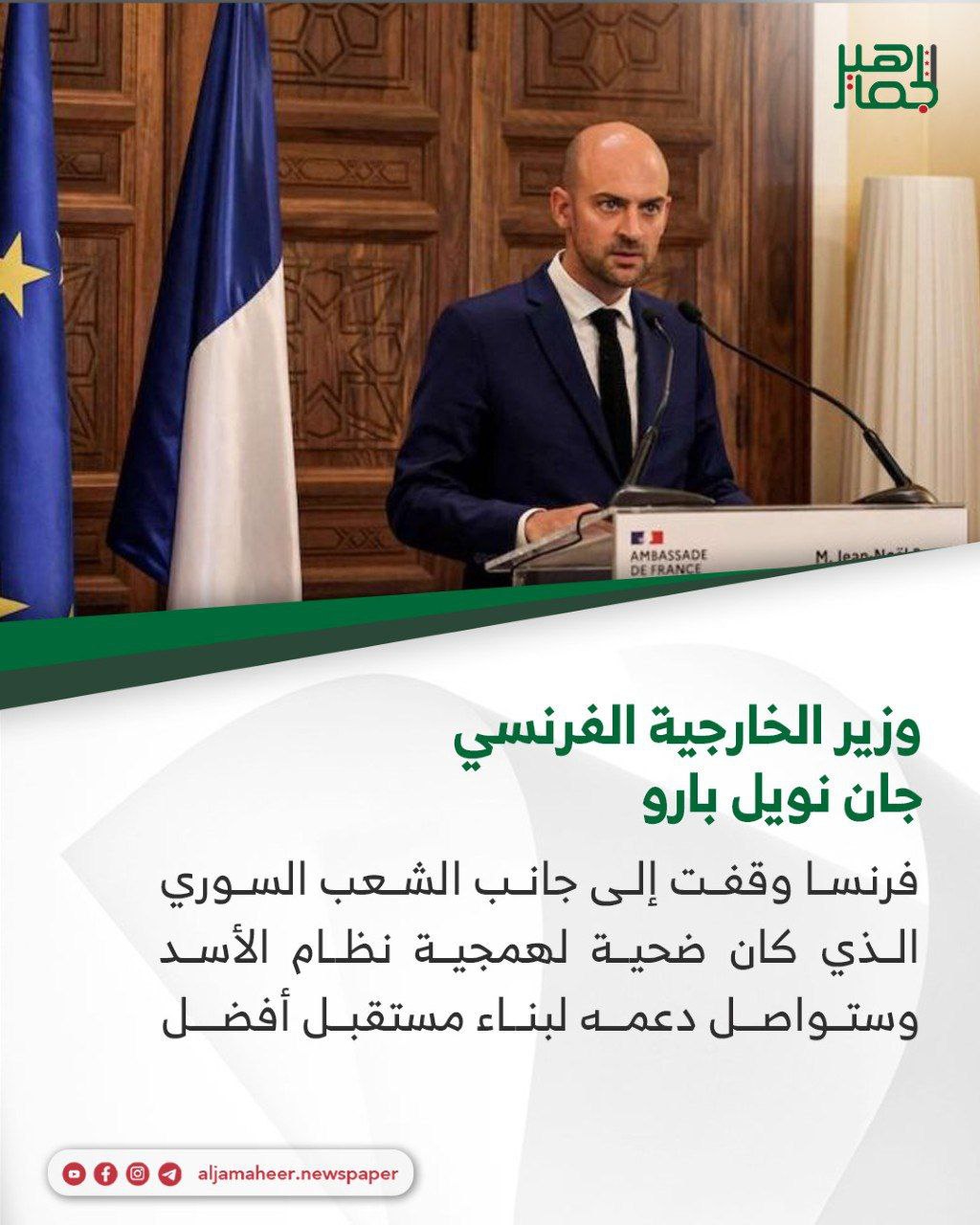📌فرنسا وقفت إلى جانب الشعب السوري الذي كان ضحية لهمجية نظام الأسد وستواصل دعمه لبناء مستقبل أفضل