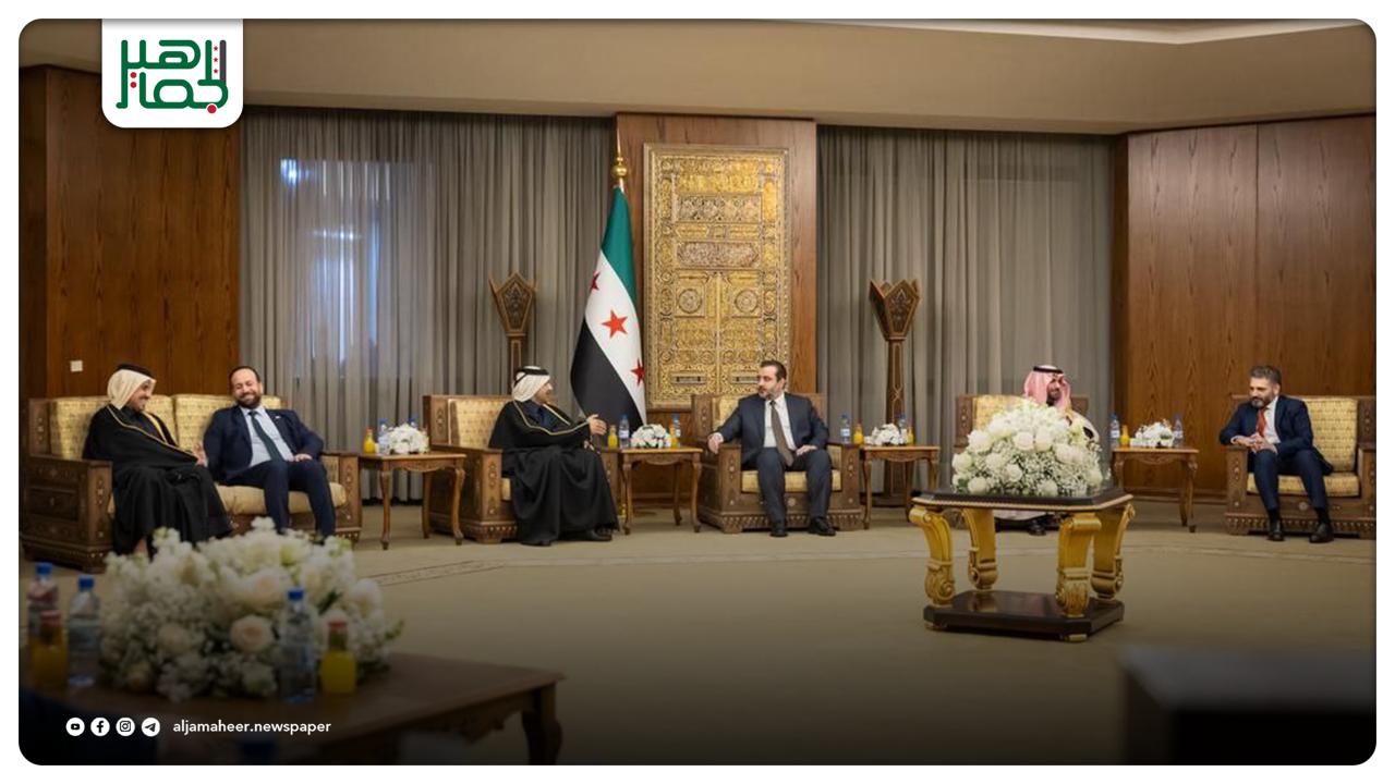 التقى وزير الخارجية والمغتربين السيد أسعد حسن الشيباني بحضور وزير الثقافة السيد محمد صالح ووزير الإعلام السيد حمزة المصطفى في العاصمة دمشق بوزير الثقافة في المملكة العربية السعودية صاحب السمو الأمير بدر بن عبد الله بن فرحان آل سعود،