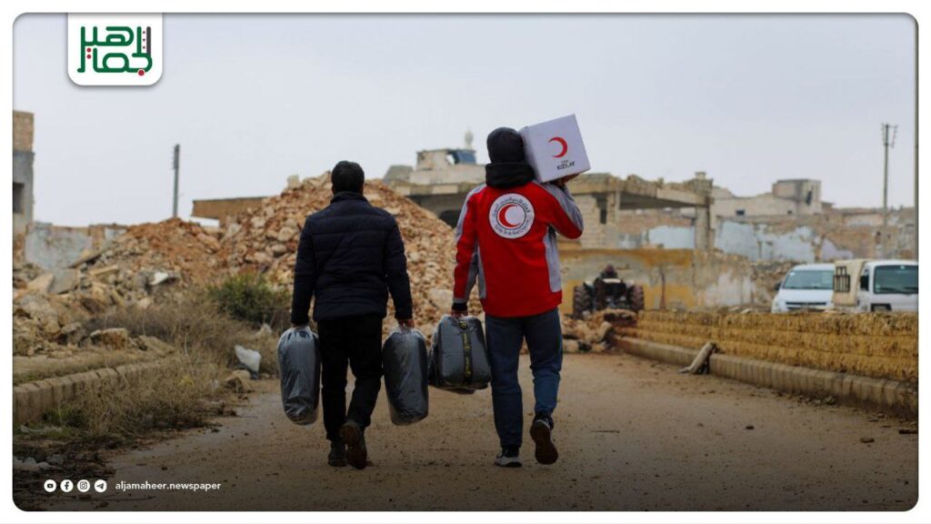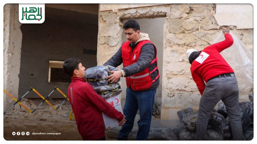 الهلال الأحمر: دعم إغاثي لـ 300 عائلة عائدة في ريف حلب الشمالي محليات On فبراير 7, 2026 Share 📌 توزيع مواد إغاثية لـ 300 عائلة عائدة لقرية ماير، في ريف حلب الشمالي. 📌 شملت حصة غذائية وكيسي نوم لكل أسرة، بدعم الهلال الأحمر التركي. 🔔 اشترك بقناة التيليجرام: https://t.me/jamaheer Share FacebookTwitterGoogle+ReddItWhatsAppPinterestالبريد الإلكتروني
