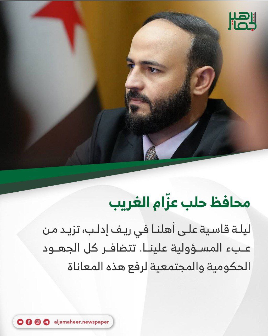 قمت بتوجيه لجنة الاستجابة الطارئة للبدء بتجهيز أماكن سكن في محافظة حلب لنقل الأهالي المتضررين إليها، وقد توجّه فريق الاستجابة إلى المواقع المتضررة للتنسيق مع محافظة إدلب لأجل ذلك.