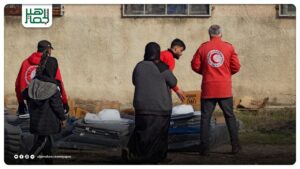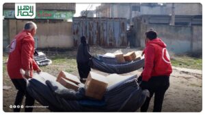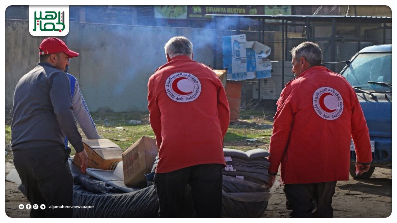 وزّع الهلال الأحمر العربي السوري مواد إغاثية لـ 500 عائلة اضطرت لترك منازلها في القرى المحيطة بمدينة عين العرب، في ريف حلب، في أحوال جوية صعبة.