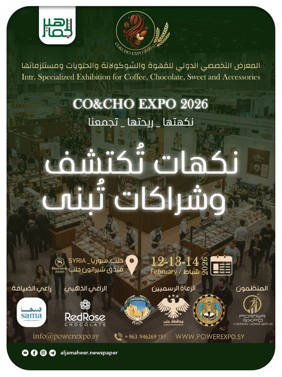 تعزيزاً للشراكة الاستراتيجية بين القطاعين العام والخاص لدعم الفعاليات الاقتصادية، وتحفيز عجلة الإنتاج، وفتح آفاق جديدة للتعاون التجاري والاستثماري، تستعد مدينة حلب، العاصمة الاقتصادية لسوريا، لاستضافة أول معرض دولي من نوعه، يعكس حيوية السوق السورية وقدرتها على جذب الاستثمارات والفعاليات الدولية. فبعد غد، تفتح أبواب المعرض الدولي التخصصي الأول للقهوة والشوكولا والحلويات، بمشاركة واسعة من شركات محلية وعربية ودولية، في خطوة تؤكد على عودة حلب كمركز إقليمي للمعارض المتخصصة.