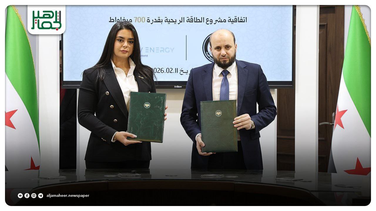 توقيع اتفاقية اليوم بين المؤسسة العامة لنقل وتوزيع الكهرباء وشركة ميرف إنيرجي الوطنية، وذلك لإطلاق مشروع طاقة ريحية بقدرة 700 ميغاواط، وذلك بحضور وزير الطاقة محمد البشير.