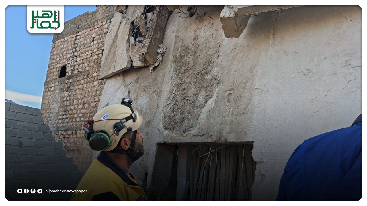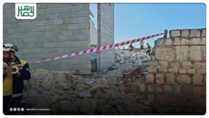 إصابة رجل جرّاء انهيار جدار منشأ حديثاً بجانب منزل مؤلف من ثلاث طوابق، قد تعرض في وقت سابق لقصــ.ــف من نظام الأسد البائد، في مدينة حريتان بريف حلب، اليوم الأربعاء.