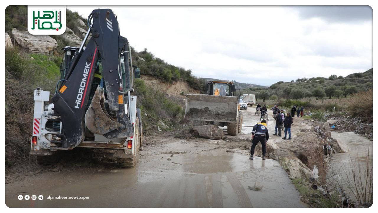 عملت فرق الدفاع المدني السوري في وزارة الطوارئ وإدارة الكوارث على فتح الطريق وإزالة التربة والصخور التي جرفتها مياه الأمطار، لإعادة الحركة المرورية وتأمين سلامة المدنيين.
