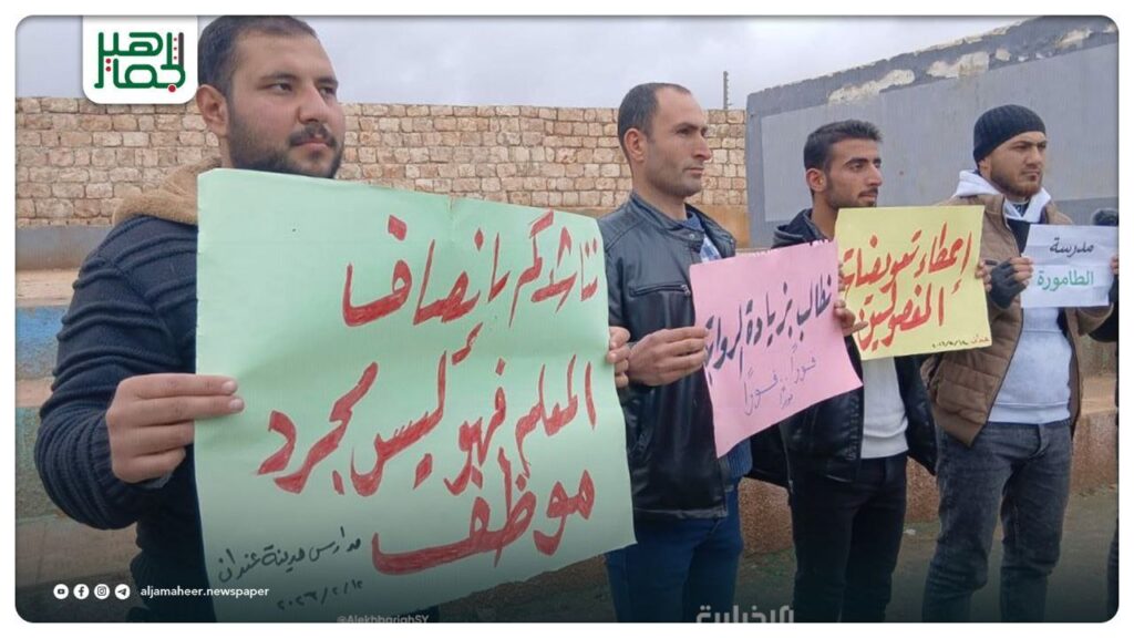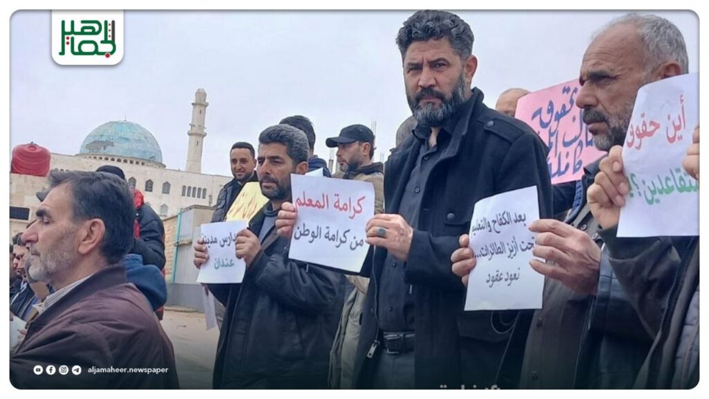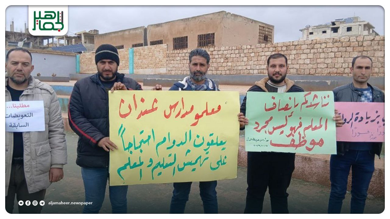 وقفة احتجاجية لمعلمي عندان في ريف حلب مع تعليق الدوام ليوم واحد في مدارس المدينة والقرى المحيطة بها للمطالبة بحقوقهم وتحسين مستوى الخدمات المقدّمة للمعلمين والطلاب ودعم العملية التعليمية محليات On فبراير 12, 2026 Share Share FacebookTwitterGoogle+ReddItWhatsAppPinterestالبريد الإلكتروني
