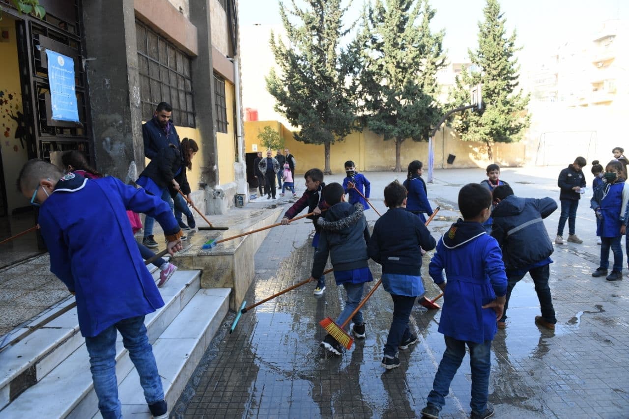 وأوضحت مرام وفائي المديرة المعاونة في مدرسة الشهيد علي نضال ضويا في حي الزهور بالسريان الجديدة إن المدرسة تتألف من 19 شعبة وتتضمن نظام دوام ثنائي صباحي ومسائي ويوجد شعبة رياض أطفال بالإضافة إلى دمج ذوي الاحتياجات الخاصة بعدد 18 طالباً، ورحبت بالجهود التي تبذلها المنظمات الاهلية معربةً عن امتنانها للمعلومات التي قدموها وساهمت بتحفيز الطلاب للاشتراك في العمل التطوعي وتعزيز ثقافة الانتماء والحفاظ على نظافة المدرسة الأمر الذي يساهم على تبيان الجوانب الجمالية للمدرسة انطلاقاً للحي والمدينة.