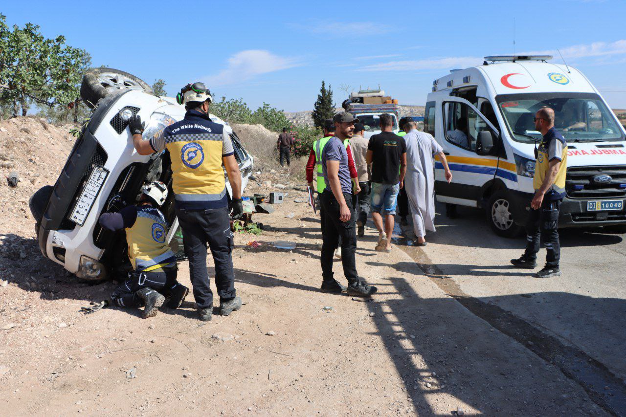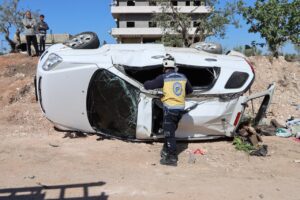 أصيب رجل وامرأتان وثلاثة أطفال بجروح بليغة، نتيجة حادث سير بانقلاب السيارة التي كانوا يستقلونها، على الطريق الدولي حلب – دمشق بالقرب من مدينة خان شيخون في ريف إدلب، اليوم.
