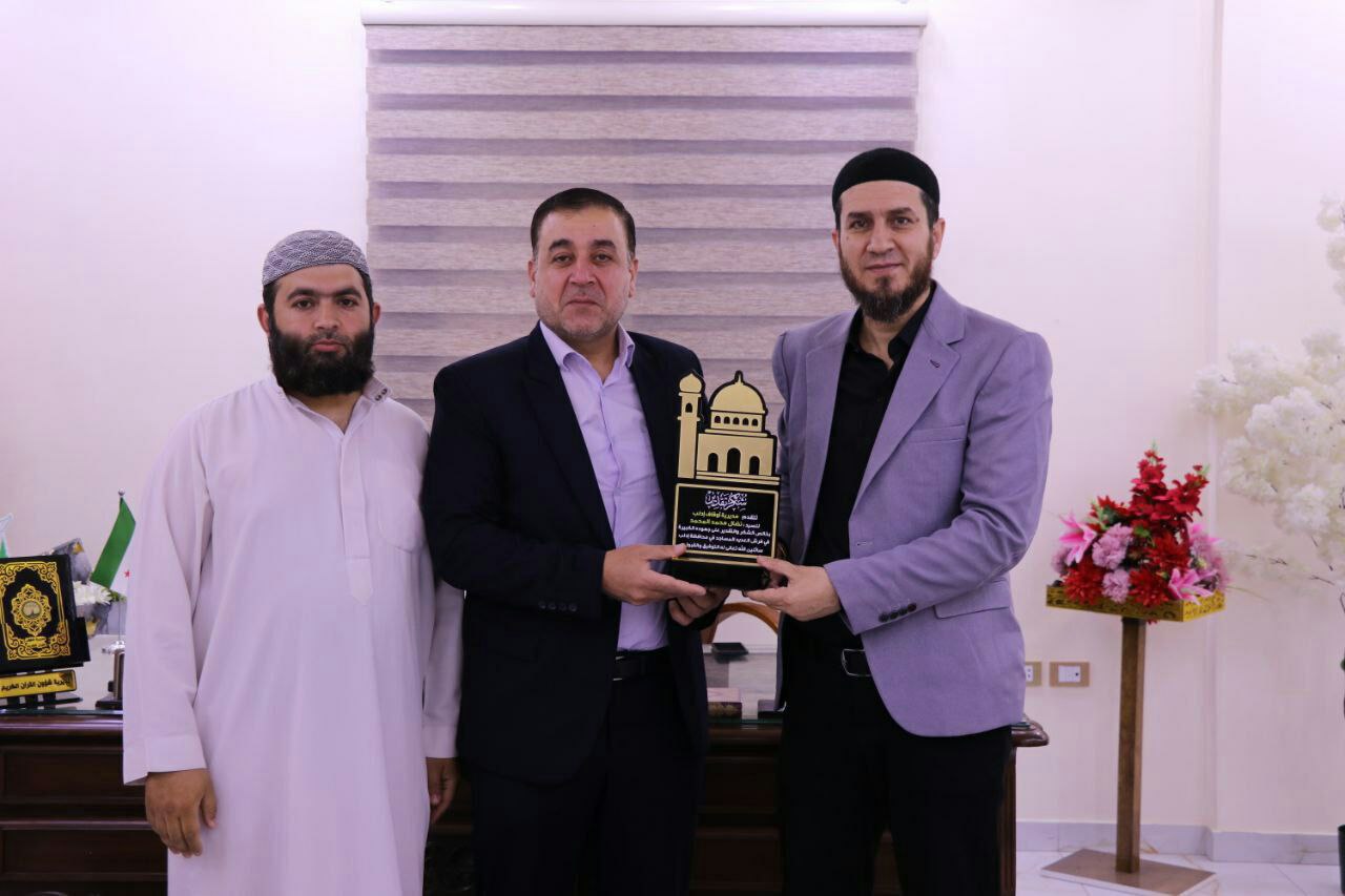 كرّم مدير أوقاف محافظة إدلب عبد الحميد الخلف السيد محمد نضال المحمد تقديراً لعطائه الاستثنائي في فرش 500 مسجد داخل المحافظة وخارجها، ضمن مسيرته الرائدة في خدمة بيوت الله.