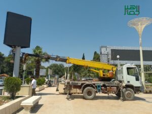 المظهر الليلي للساحة سيكون غاية في الروعة، مع النموذج الجديد كلياً للإنارة الذي سيضيء الساحة بصورة جمالية مميزة، عبر مجسمات الزنبقة، إضافة لـ45 عمود إنارة صغيرة موزعة حول الساحة، و 8 عواميد كبيرة أربعة منها في المنصة ومثلها على المدرج.
