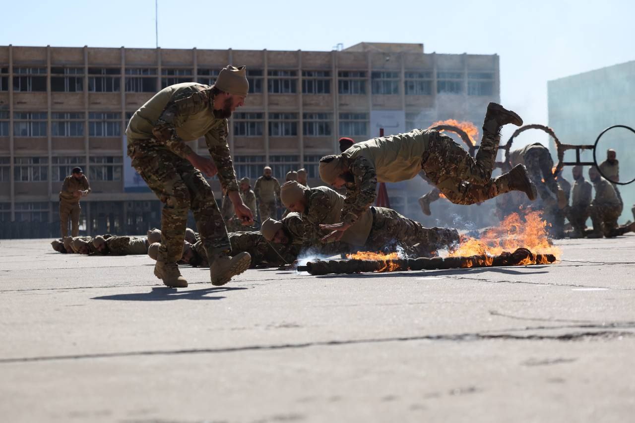 نفّذ الخريجون عرضًا عسكريًا مهيبًا تضمّن مسير النظام المُنضم، واستعراض حركات السلاح بتنسيق دقيق، إضافةً إلى عرضٍ للقوة والقتال القريب، عَكَسَ مستوى الجاهزية والانضباط الذي وصلت إليه الكوادر المُتخرّجة، ضمن رؤية تهدف إلى إعداد جيلٍ عقائدي ملتزم بمهامه.