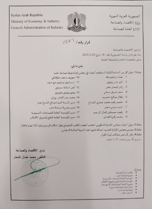 قرار تعيين أعضاء غرفة صناعة حلب محليات On يوليو 3, 2025 Share #صحيفة_الجماهير Share FacebookTwitterGoogle+ReddItWhatsAppPinterestالبريد الإلكتروني