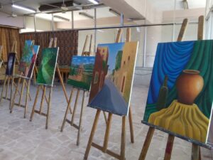 – لوحات للطبيعة الصامتة وأخرى خطية