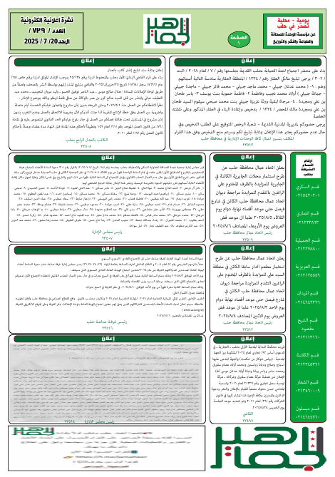 إعلانات الجماهير نشرة إعلانية الكترونية العدد رقم /739/ ليوم الأحد 20 – 7 – 2025 اعلانات Last updated يوليو 20, 2025 Share Loading... Taking too long? Reload document | Open in new tab Share FacebookTwitterGoogle+ReddItWhatsAppPinterestالبريد الإلكتروني