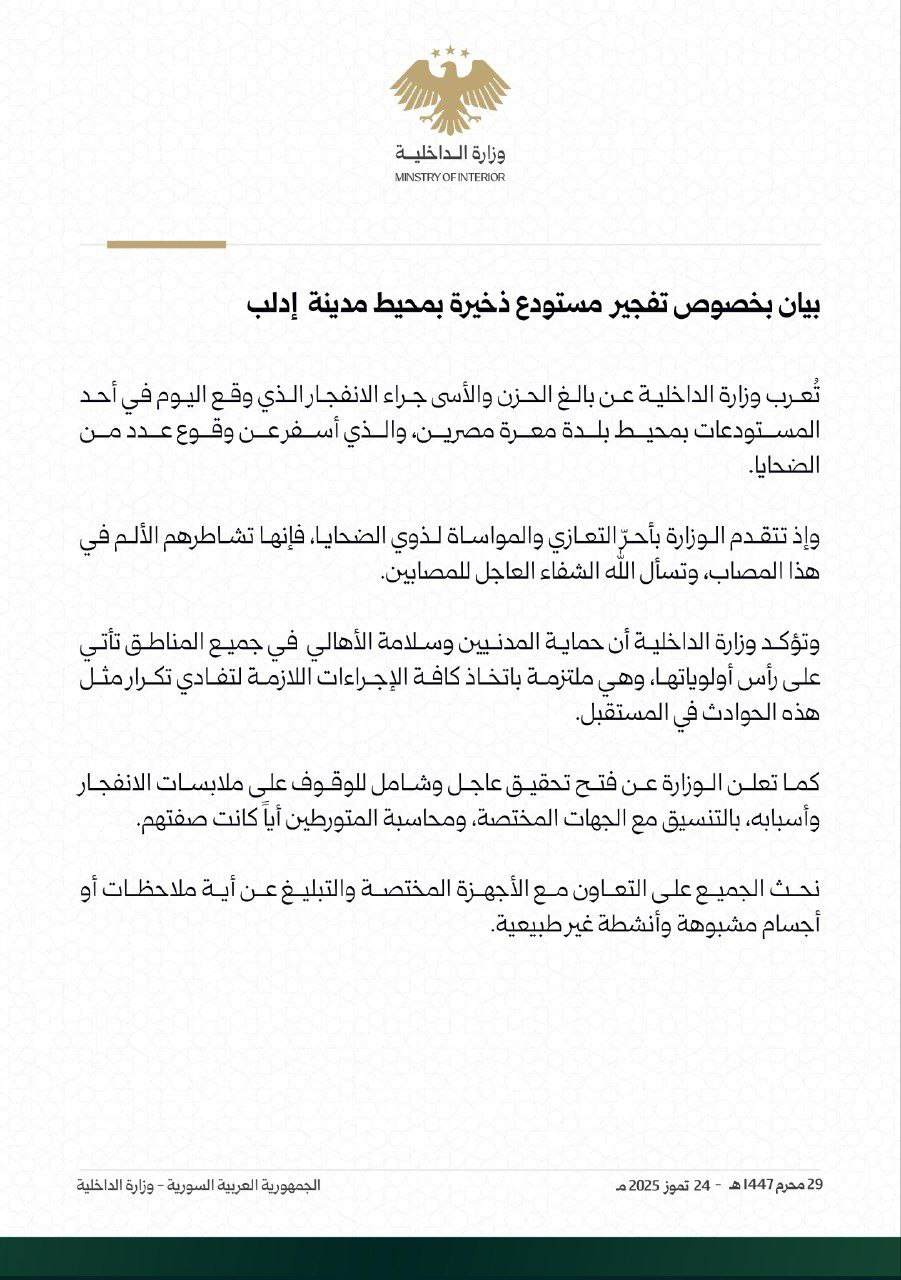 مراسل الجماهير: تفقد محافظ إدلب محمد عبد الرحمن أوضاع المصابين وذوي الضحايا جراء انفجار طريق إدلب – معرة مصرين، مؤكداً على ضرورة تقديم الرعاية اللازمة لهم. محليات On يوليو 24, 2025 Share #صحيفة_الجماهير Share FacebookTwitterGoogle+ReddItWhatsAppPinterestالبريد الإلكتروني