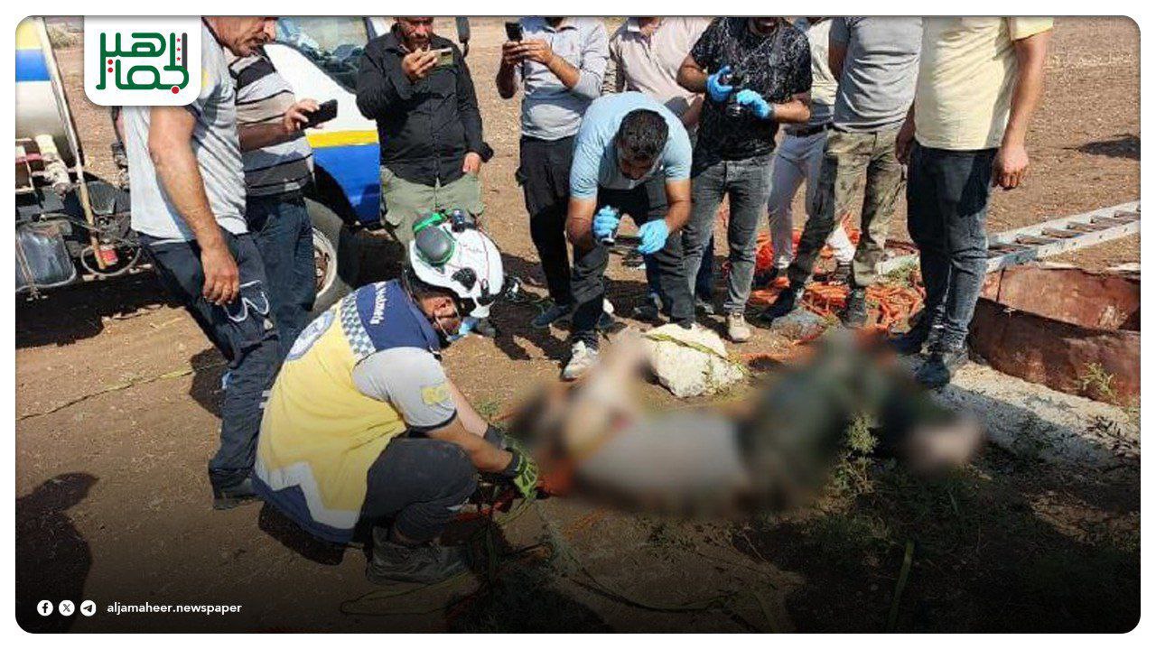تلقت فرق الدفاع المدني السوري يوم الأحد، 27 يوليو، بلاغاً من مركز الشرطة في مدينة عفرين شمال حلب يفيد بوجود جثة رجل داخل بئر مياه عربي بعمق 15 مترًا على أطراف المدينة. على الفور، توجهت فرقنا إلى الموقع، واستخدمت السلالم ومنظومات الحبال لانتشال الجثة بحضور الشرطة. بعد ذلك، تم نقل الجثة إلى المستشفى في عفرين، بحضور الجهات المختصة لتولي الإجراءات اللازمة..
