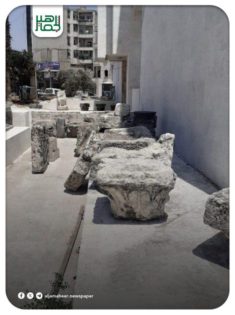 بلغت نسبة تنفيذ الأعمال في مشروع الصيانة الخارجية لجدران متحف إدلب 85%.