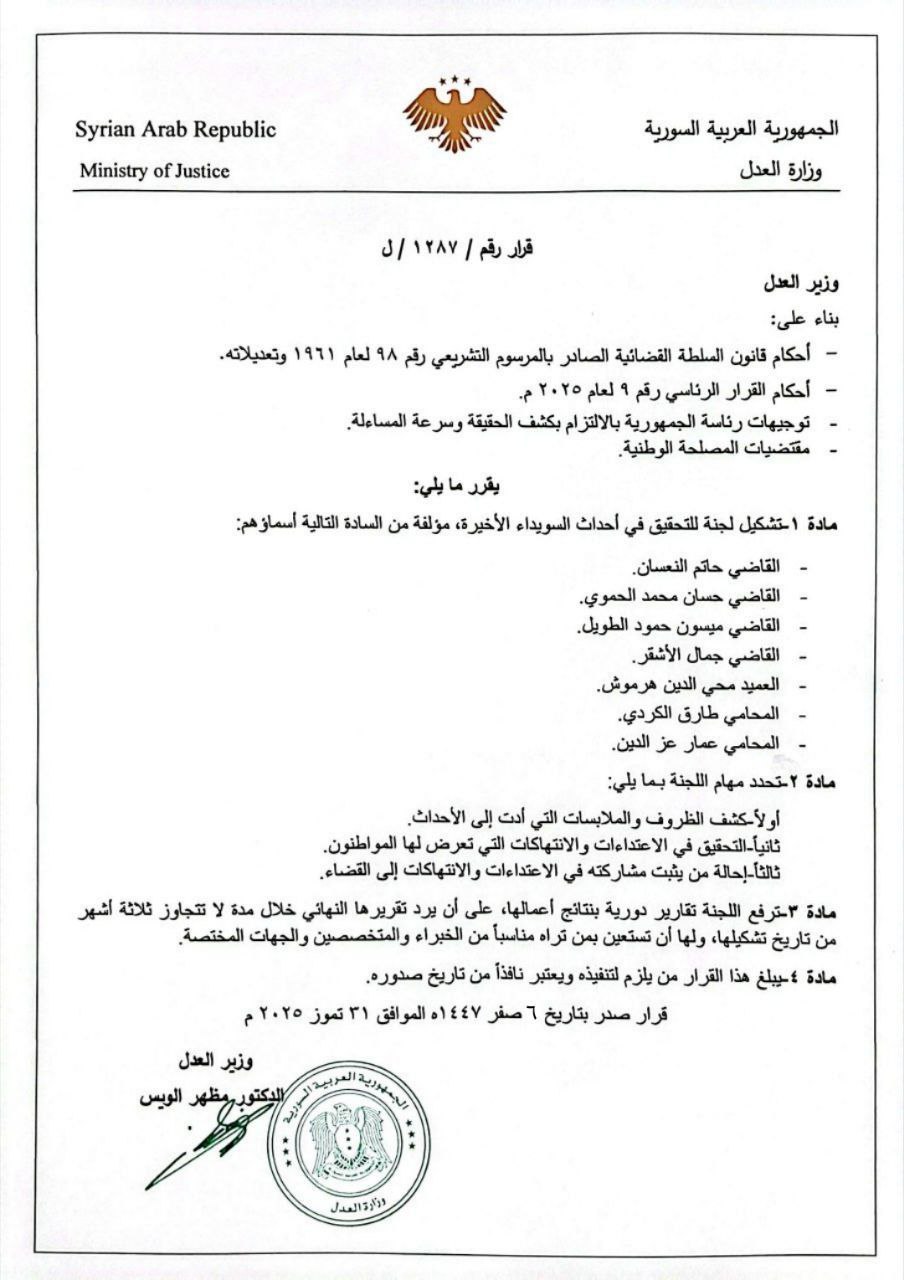 قرار بتشكيل لجنة للتحقيق في أحداث السويداء الأخيرة أحدث الأخبار On يوليو 31, 2025 Share Share FacebookTwitterGoogle+ReddItWhatsAppPinterestالبريد الإلكتروني