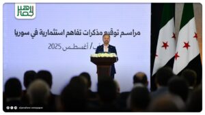 من مراسم توقيع مذكرات تفاهم استثمارية مع عدد من الشركات الدولية، بحضور السيد الرئيس أحمد الشرع وذلك في قصر الشعب بدمشق أحدث الأخبار On أغسطس 6, 2025 Share Share FacebookTwitterGoogle+ReddItWhatsAppPinterestالبريد الإلكتروني