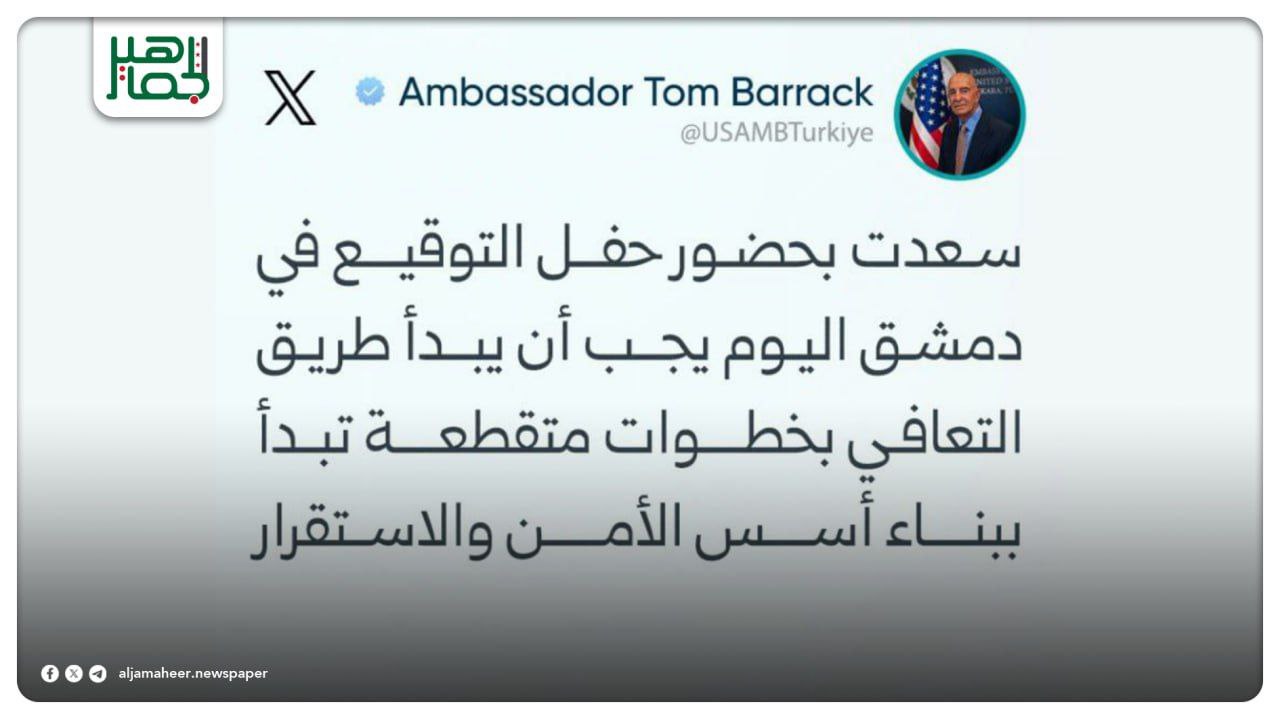 📌 سعدت بحضور حفل التوقيع في دمشق اليوم ويجب أن يبدأ طريق التعافي بخطوات متقطعة تبدأ ببناء أسس الأمن والاستقرار ثم تتبعها أنظمة حكومية وفي نهاية المطاف بناء روح المبادرة والازدهار