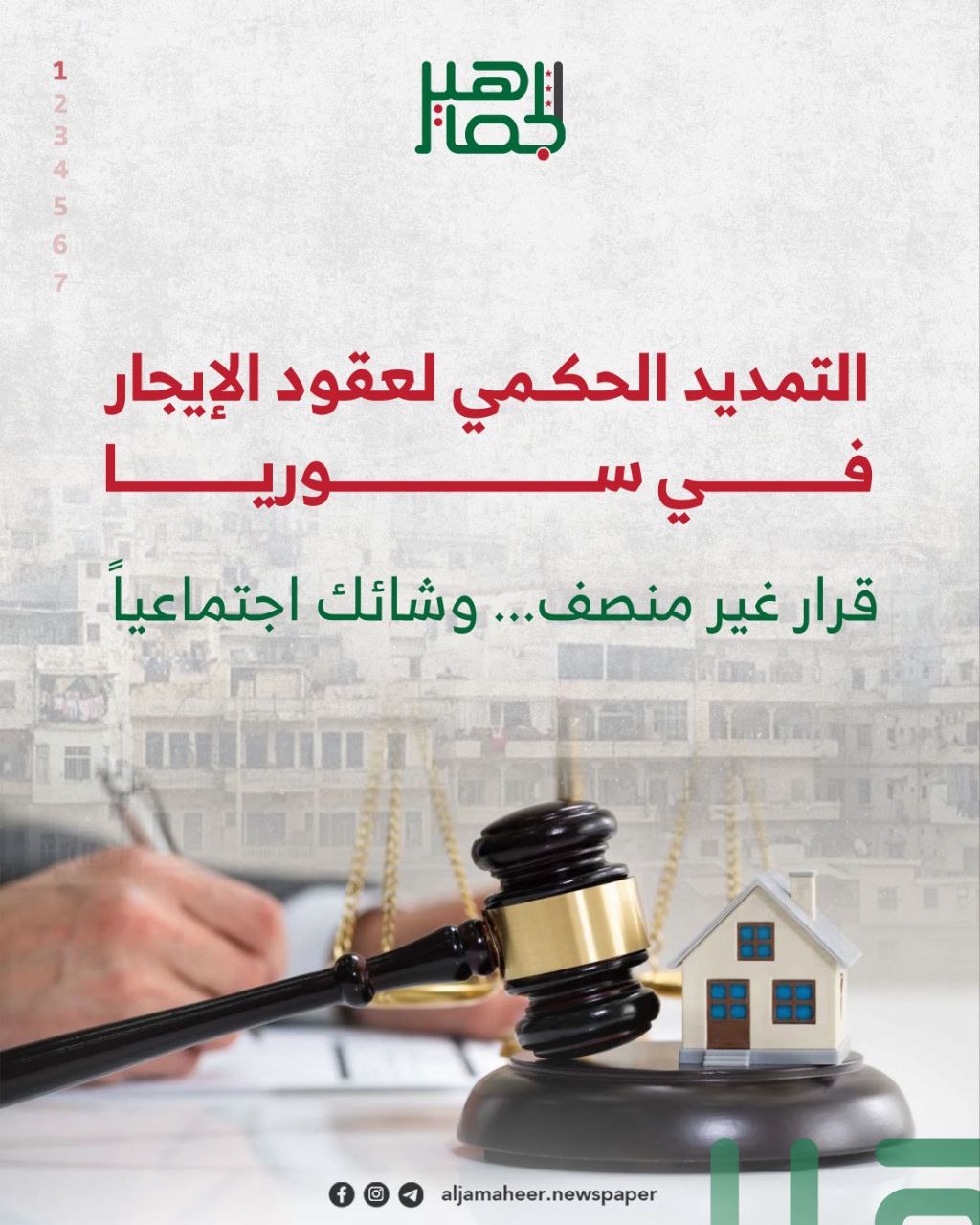 ماذا تعرف عن التمديد الحكمي لعقود الإيجار في سوريا؟ قرار غير منصف وشائك اجتماعياً أحدث الأخبار On أغسطس 11, 2025 Share Share FacebookTwitterGoogle+ReddItWhatsAppPinterestالبريد الإلكتروني