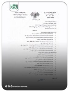 وزارة التعليم العالي والبحث العلمي تعلن عن اعتماد قائمة جديدة تضم (26) مؤسسة تعليمية غير سورية، وذلك استكمالاً للقوائم التي تم نشرها سابقاً. أحدث الأخبار On أغسطس 25, 2025 Share Share FacebookTwitterGoogle+ReddItWhatsAppPinterestالبريد الإلكتروني