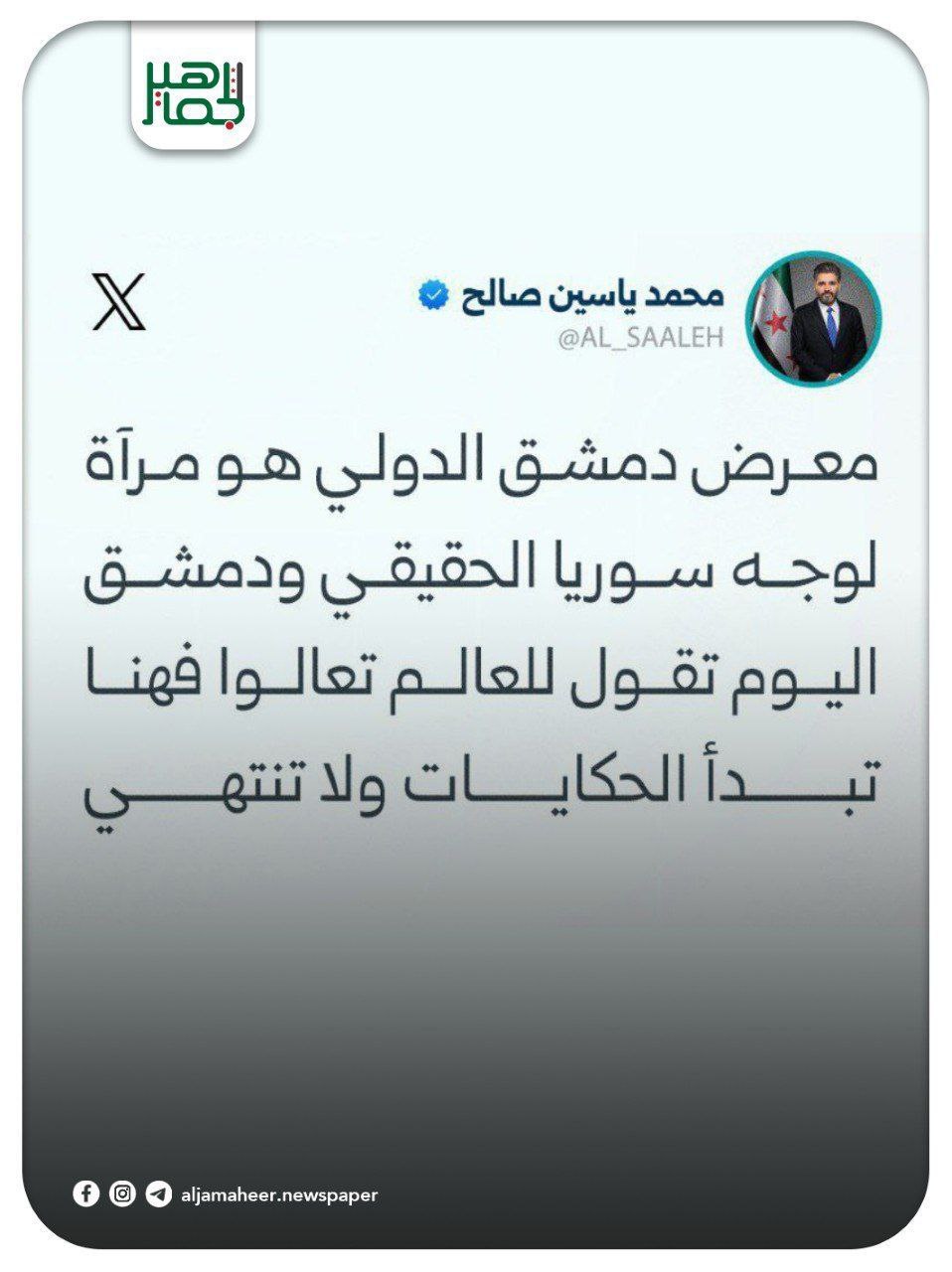 📌 انعقاد المعرض في العاصمة السورية ليس فعلاً اقتصادياً فحسب بل هو إعلان ثقافي وسياسي واجتماعي بأن سورية تستعيد عافيتها.