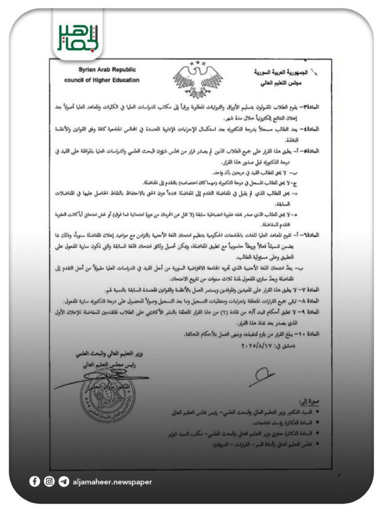 وزارة التعليم العالي والبحث العلمي تصدر قراراً باعتماد مفاضلة مركزية رقمية للدكتوراه في الجامعات الحكومية والمعاهد العليا شباب وجامعات On أغسطس 30, 2025 Share Share FacebookTwitterGoogle+ReddItWhatsAppPinterestالبريد الإلكتروني
