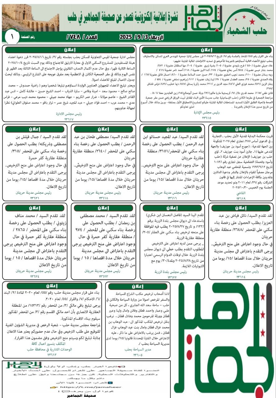 إعلانات الجماهير نشرة إعلانية إلكترونية العدد رقم /748/ ليوم الأربعاء 3– 9 – 2025 اعلانات Last updated سبتمبر 3, 2025 Share 3–9 Share FacebookTwitterGoogle+ReddItWhatsAppPinterestالبريد الإلكتروني